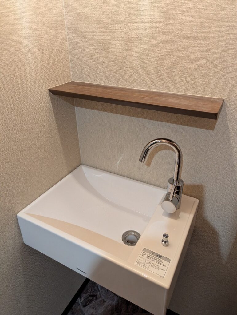 スクエアボウルがスッキリとした印象で清潔感のある洗面スペースになりました。